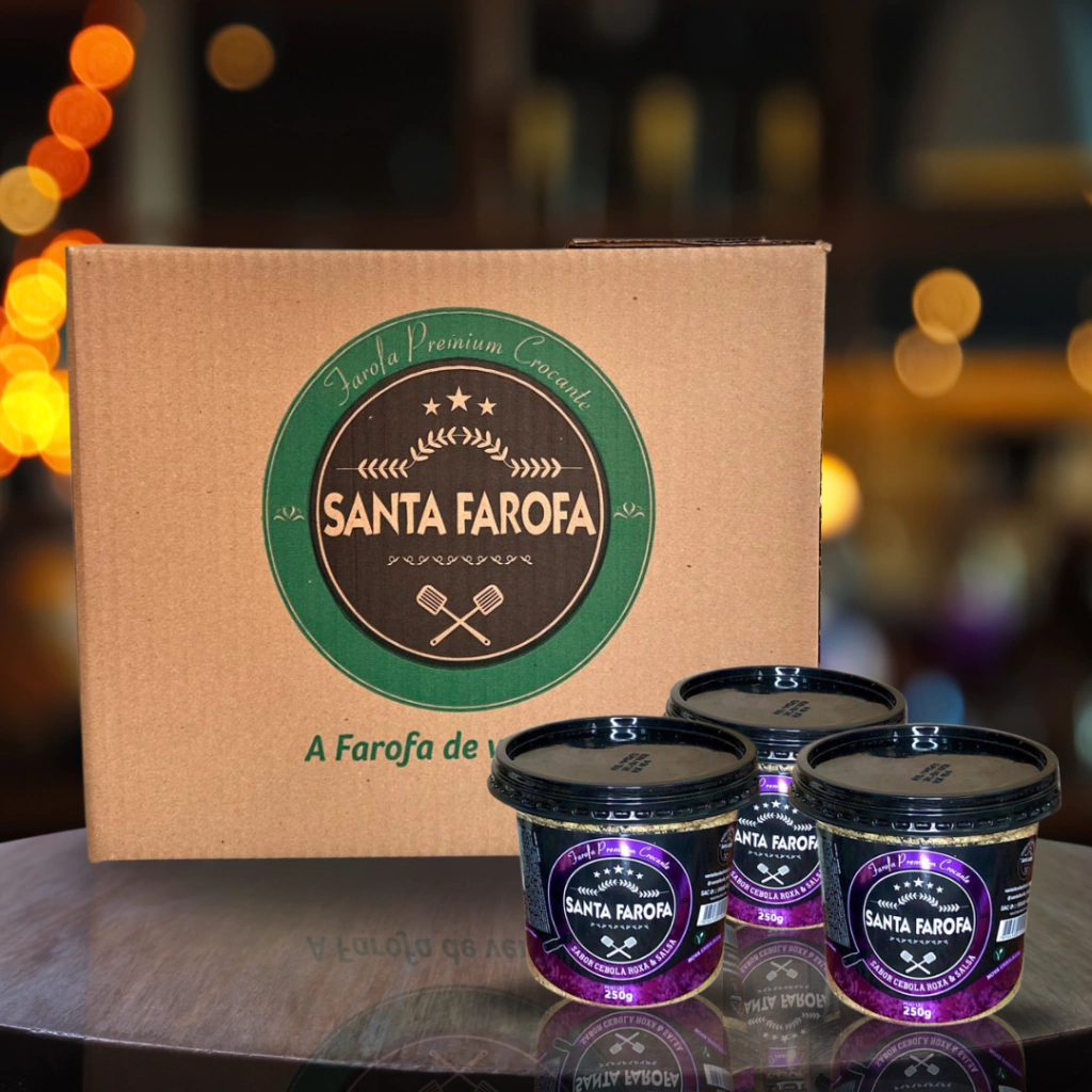 Essa caixa é ideal para quem deseja inovar em todas as refeições, trazendo o frescor da salsa e o toque leve da cebola roxa para pratos simples ou sofisticados. A Santa Farofa Cebola Roxa & Salsa é a combinação perfeita de sabor e frescor para surpreender a qualquer momento.
