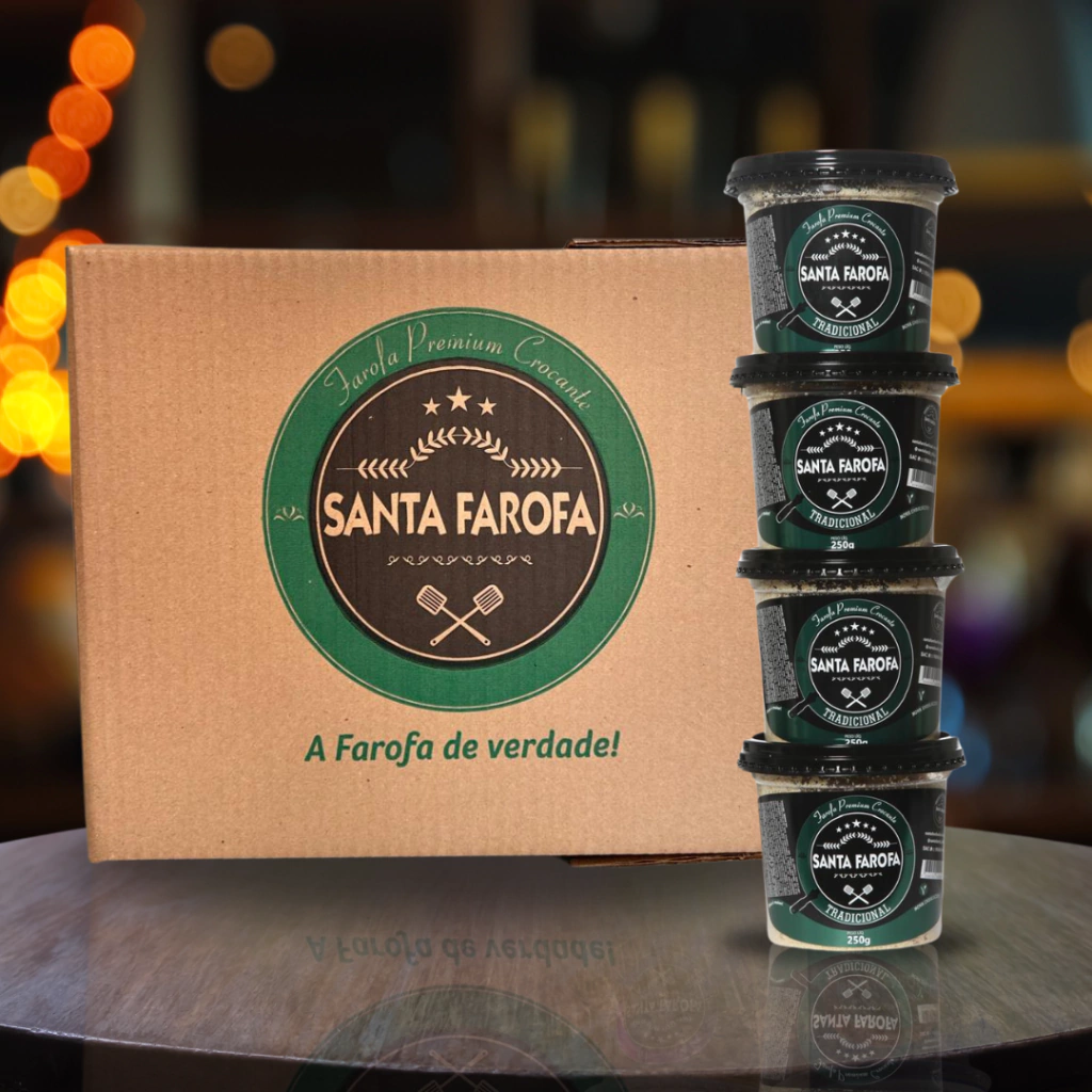 Com a Santa Farofa Tradicional em quantidade abundante, você estará sempre preparado para qualquer ocasião, garantindo sabor e qualidade em cada refeição. E com a caixa especial, este kit é a escolha perfeita para quem gosta de estar sempre pronto para receber visitas ou até mesmo para presentear.